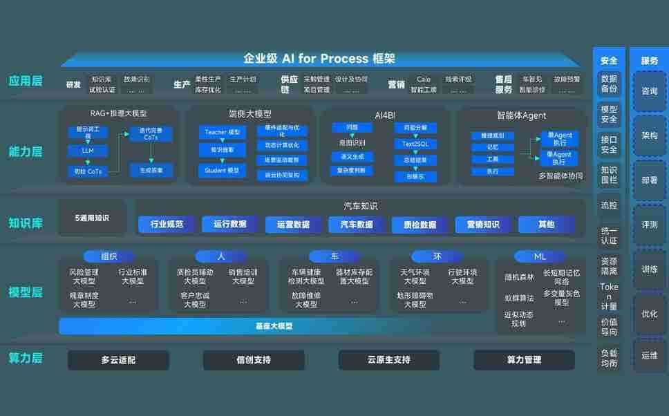 豪门国际问学智车解决方案是一套基于AI技术的汽车行业智能化系统,,覆盖从底层算力到顶层AI应用的全栈方案。。。方案由算力层、、、、模型层和应用层组成:算力层,,方案支持多种一体机配置,,,具备云端灵活部署、、、多云适配以及动态优化计算资源的能力;模型层,,豪门国际问学平台版提供了企业级AI应用一站式构建与管理平台,,,支持基于后训练强化技术的汽车企业专属模型的训练、、、评测和运营;应用层,,豪门国际问学DeepSeek版提供包括超级员工、、、、智能招采、、智能营销、、、、智能客服、、AI for BI等一系列解决方案,,,,可助力汽车行业实现数字化转型,,,,让管理更智能、、、、响应更敏捷。。。